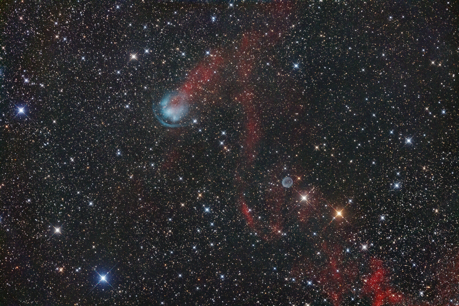 今回はカシオペア座にあるHFG1とAbell6を狙ってみました。HFG1は猫の肉球のような形をしていていつか撮ってみたいと思っていた星雲です。Abell6は丸い超新星爆発の残骸でしょうか。