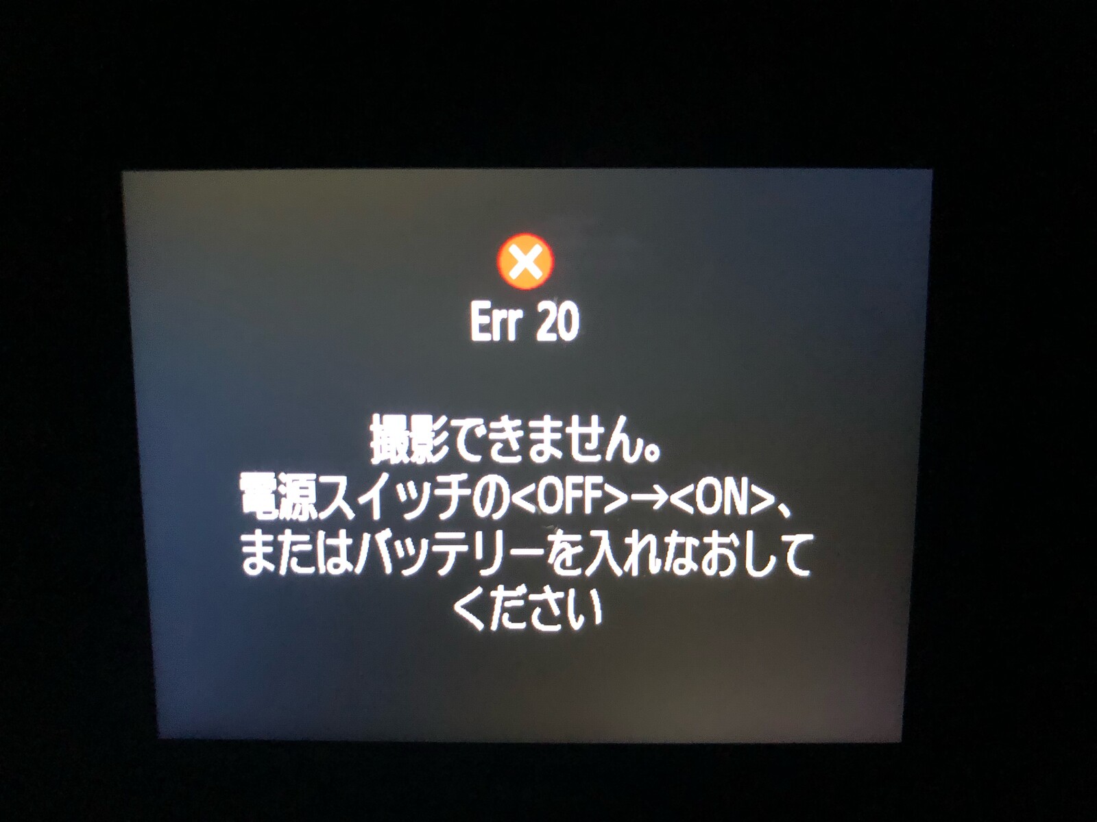 撮影を進めていくと17時40分くらいに突然エラー表示が....