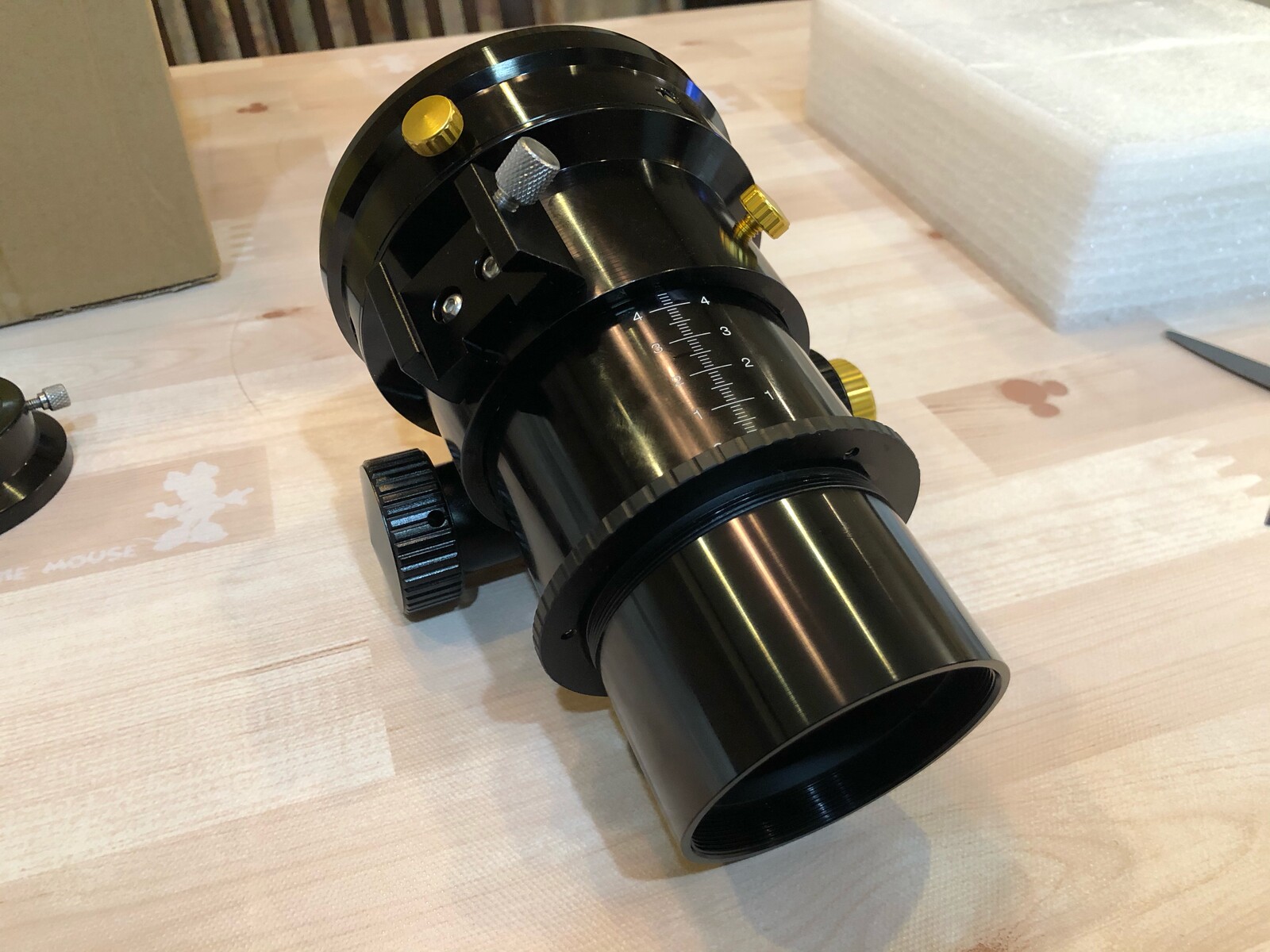 TS社3インチフラットナー『TSRCFlat3』を接眼部にセットしたところ(手前がフラットナー)