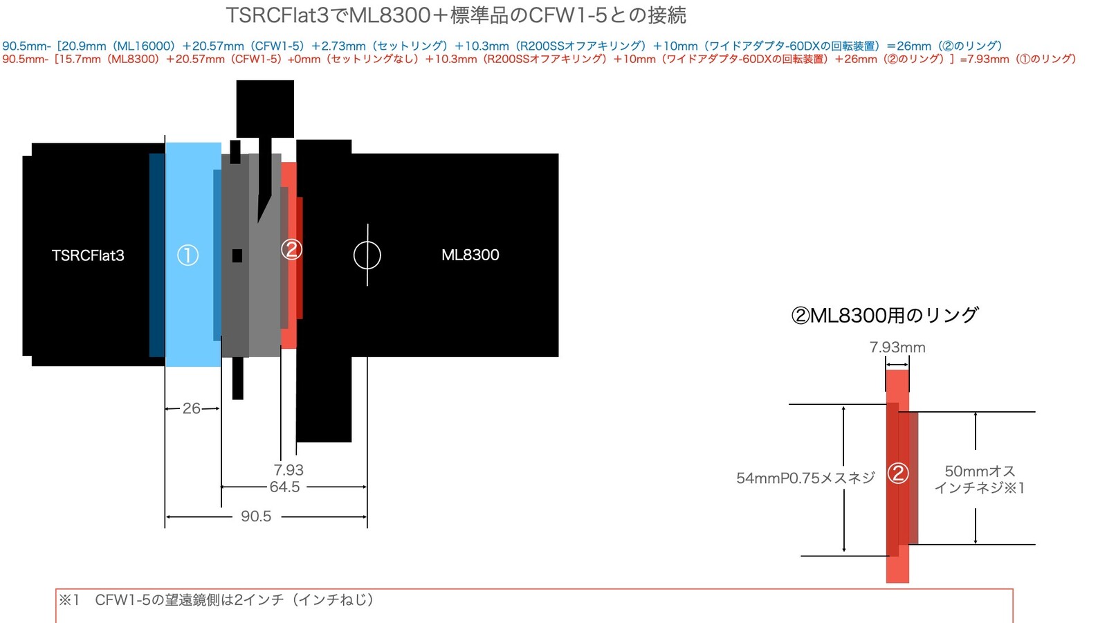 ML8300+CFW1-5用のASI6200接続リングを昨年購入していました。(下の写真の黒いリング部分)