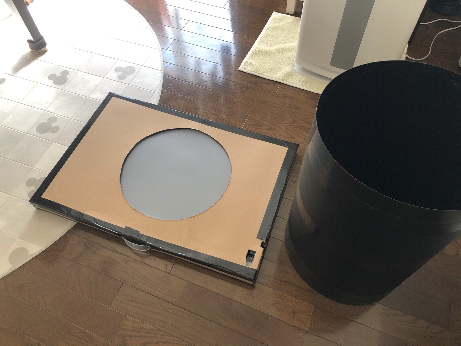 GS300RC用にA2の大きさのLEDトレース板(サンワサプライ)を購入しその箱をそのまま使ってフード径に合わせて円形に切りました。ちょっと光が漏れますがASAもこれでフラット撮影します。