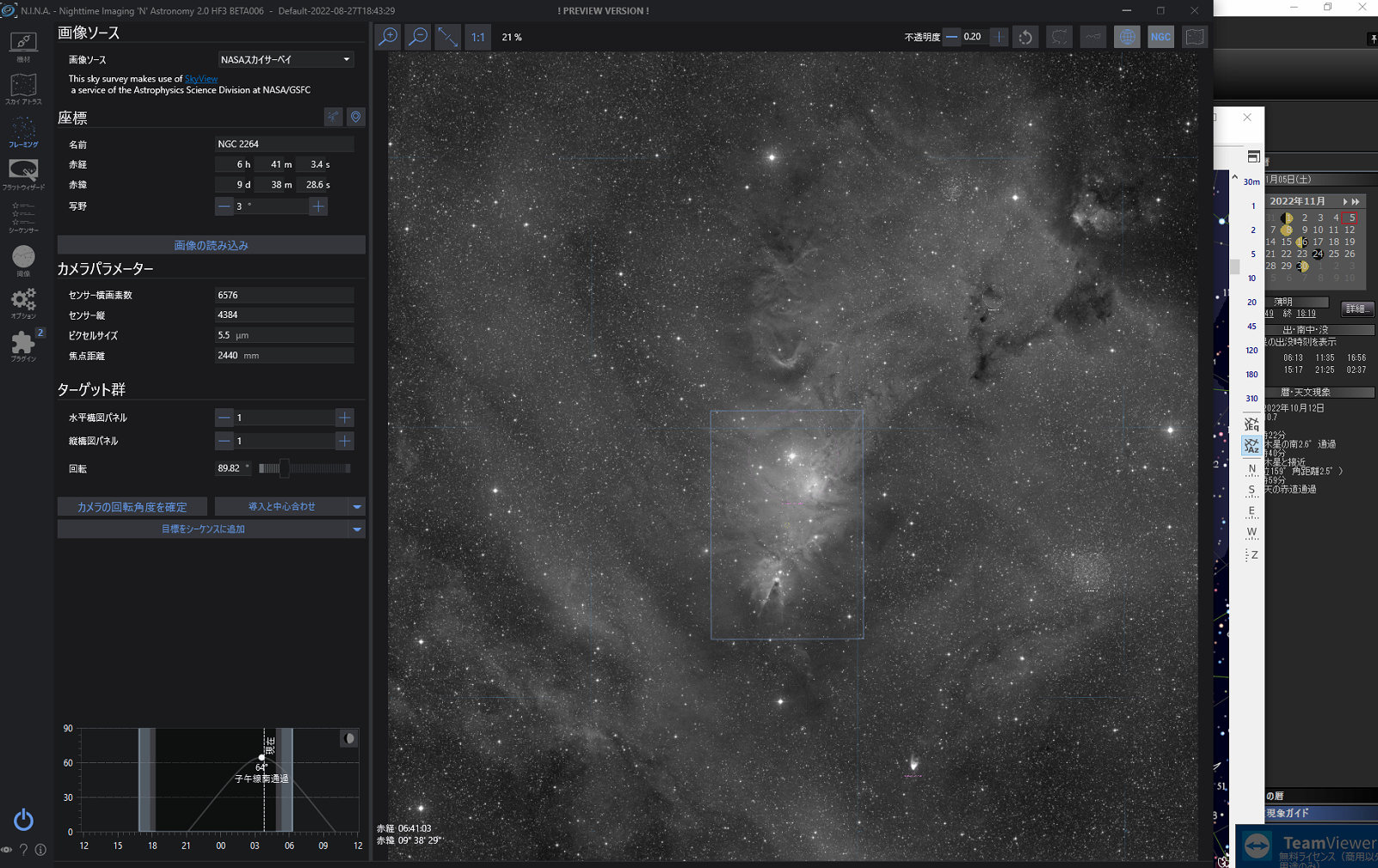 NGC2264を構図して自動導入。同じようにピッタリ合いました。