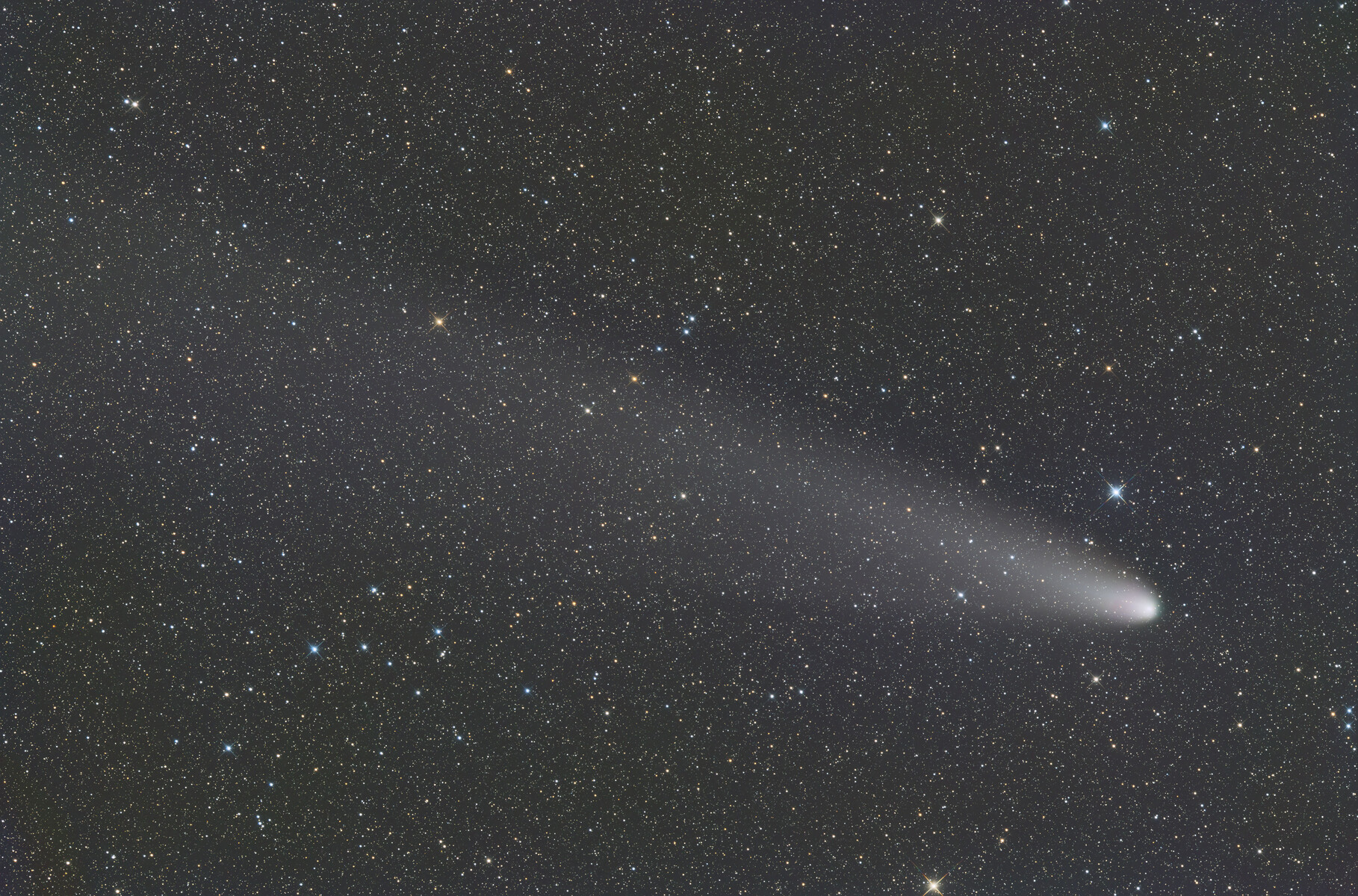 処理:PixInsightにてWBPP。CometAlignmentにて彗星核基準アライメント。rejectなしでインテグレーション。ABE、MS、AS、HT。PsCCにてローカルコントラスト調整、ノイズ処理。