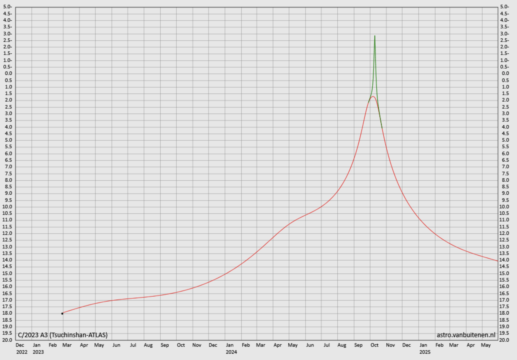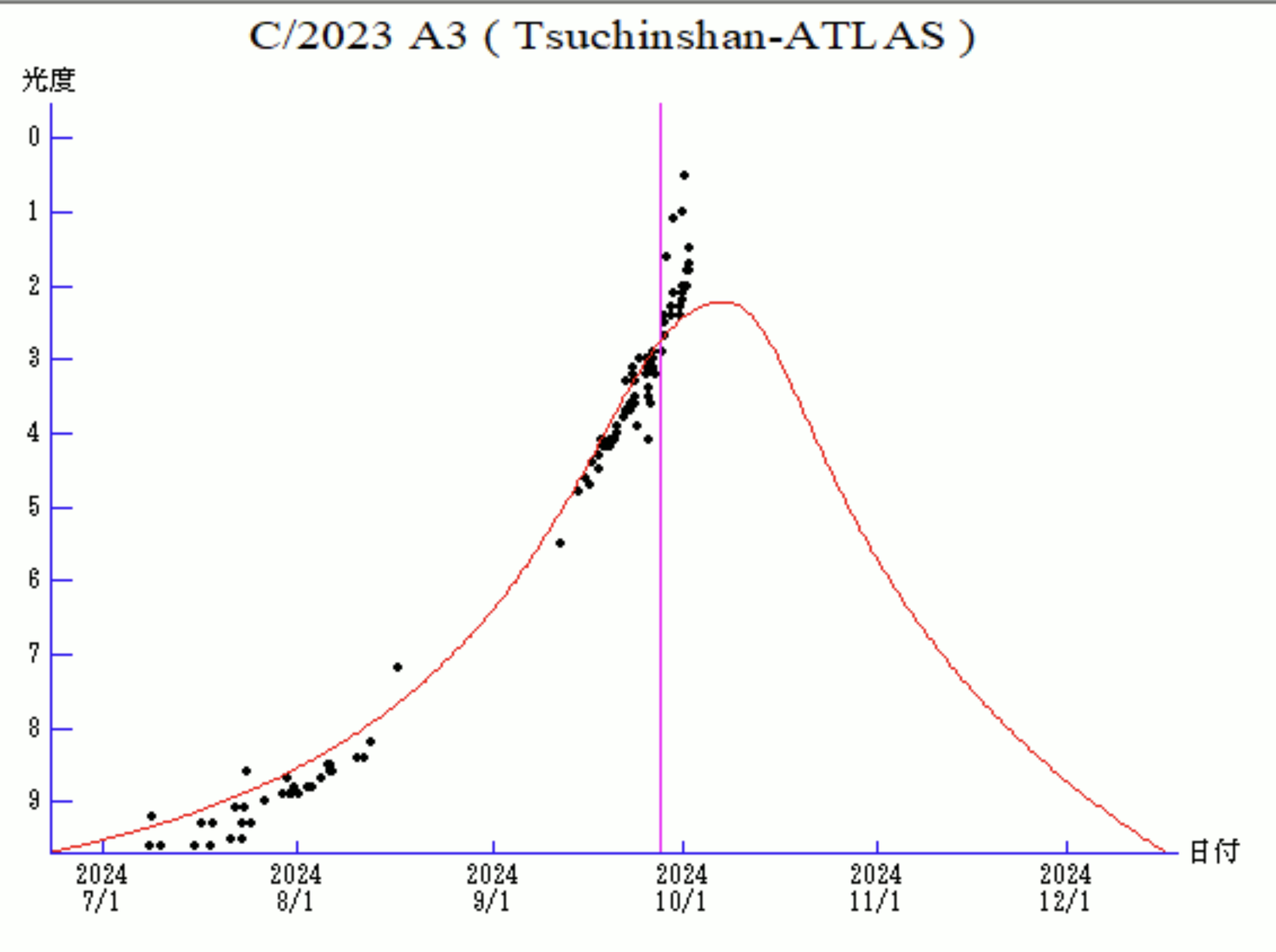 9月中旬になるとさらに驚くべき予想が出されました。10月9日に-6.9等になるかもしれないと.....ホントかいな。ここまで来るとにわかには信じられませんが、信じたいですよね。