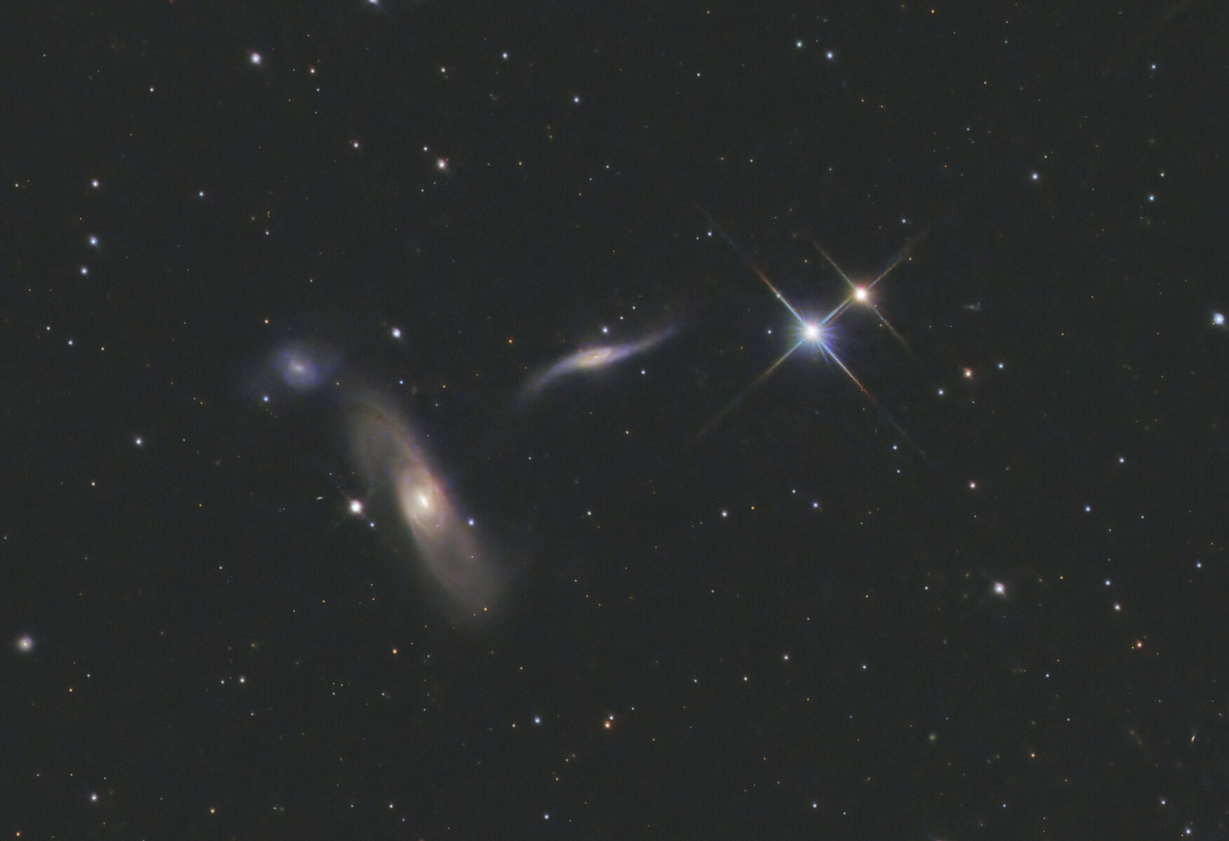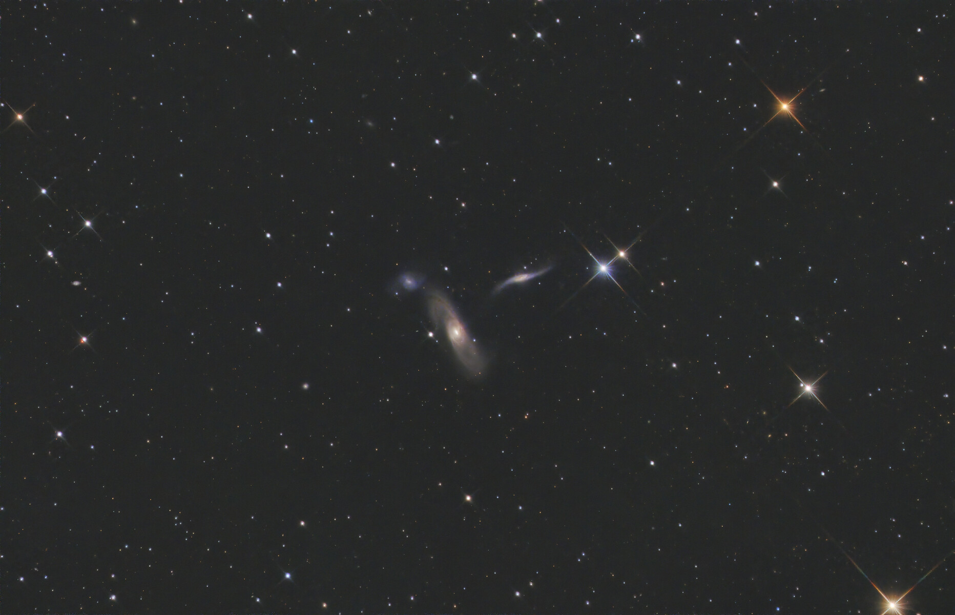 3つの銀河が並んでいますが、それぞれ面白い形をしています。