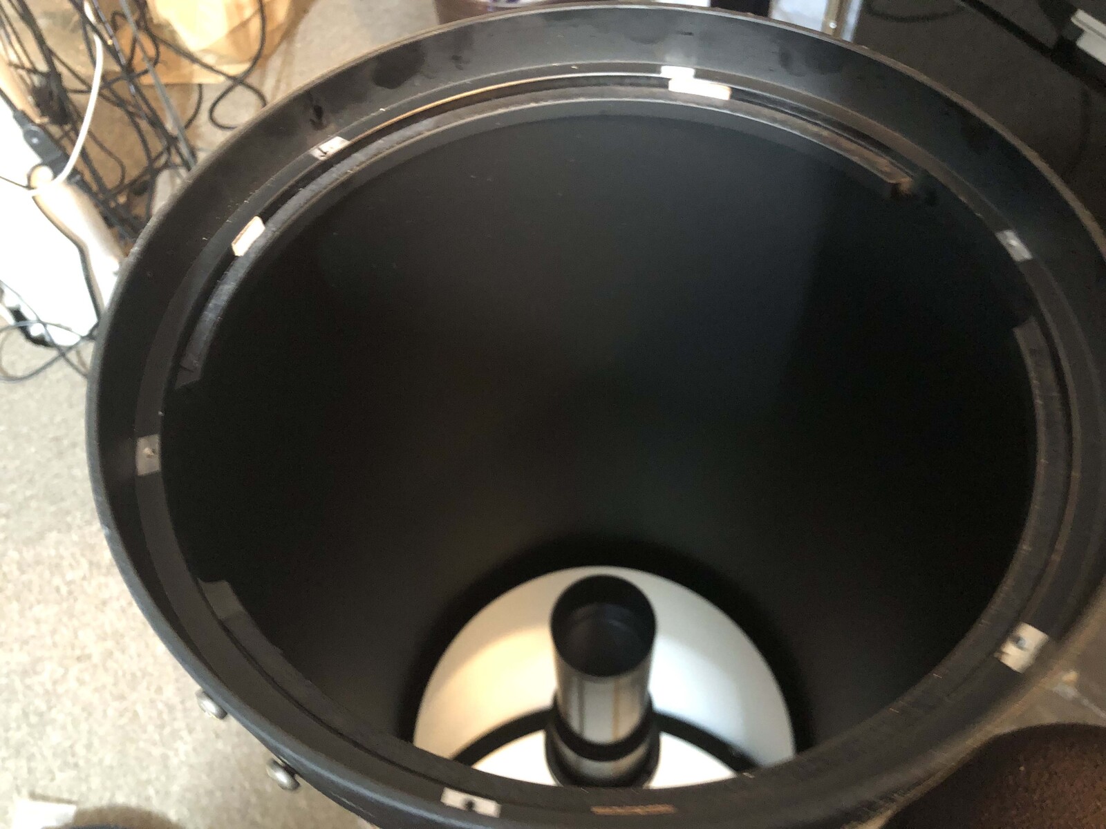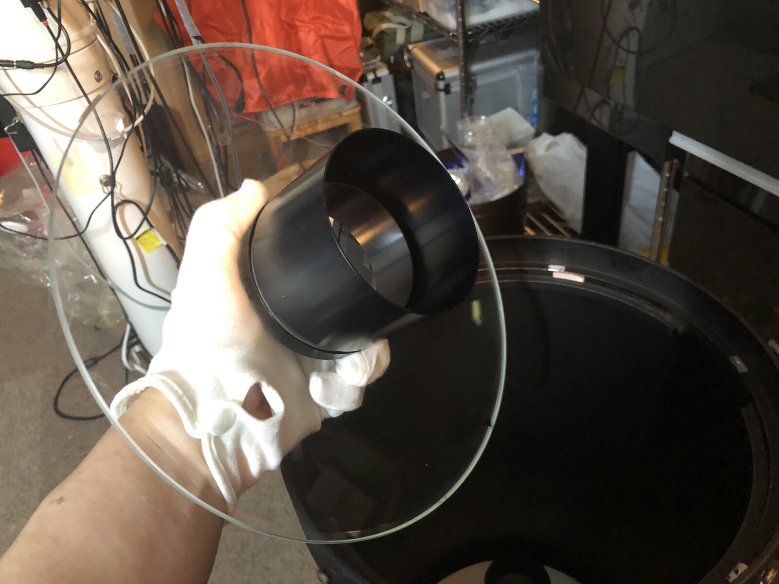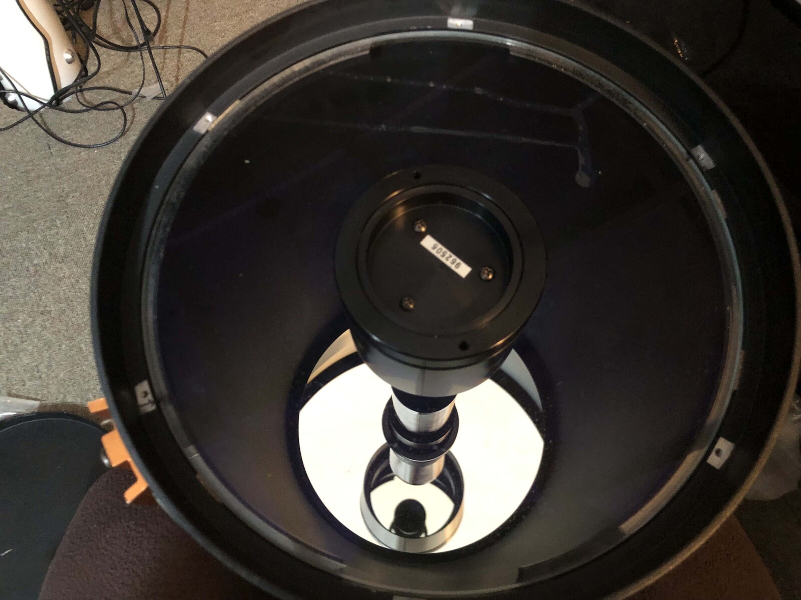 この望遠鏡は補正板を下にして立てて補完していたため、主鏡側から落ちてきたようです。
