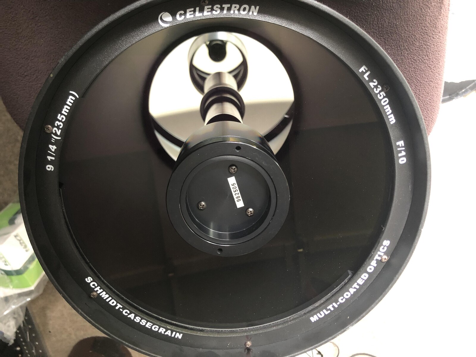 先日全ての望遠鏡とレンズ等の乾燥剤を交換した際、シュミットカセグレンのC9.25XLTの補正板に液体が付いていました。