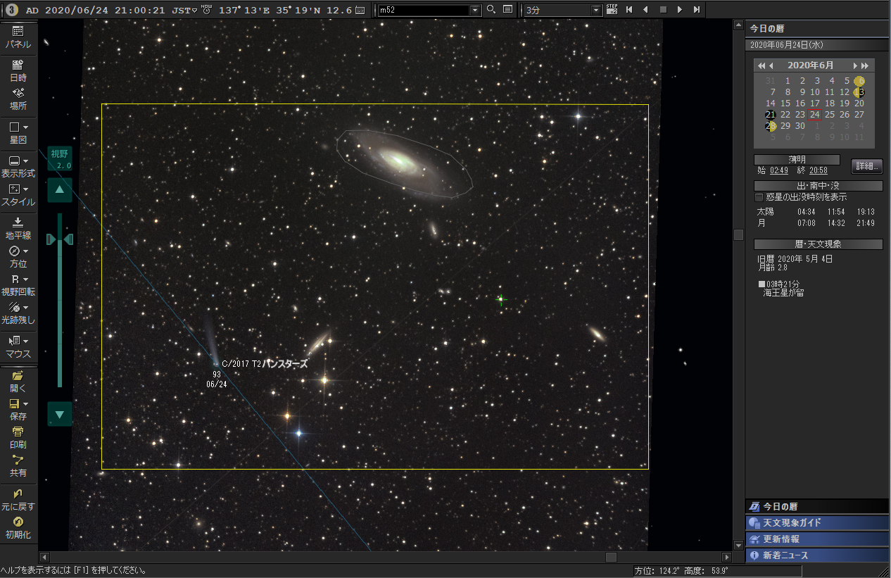 2)2020年5月23日:M81、M82との接近(見応えあり)ここが明るさのピーク