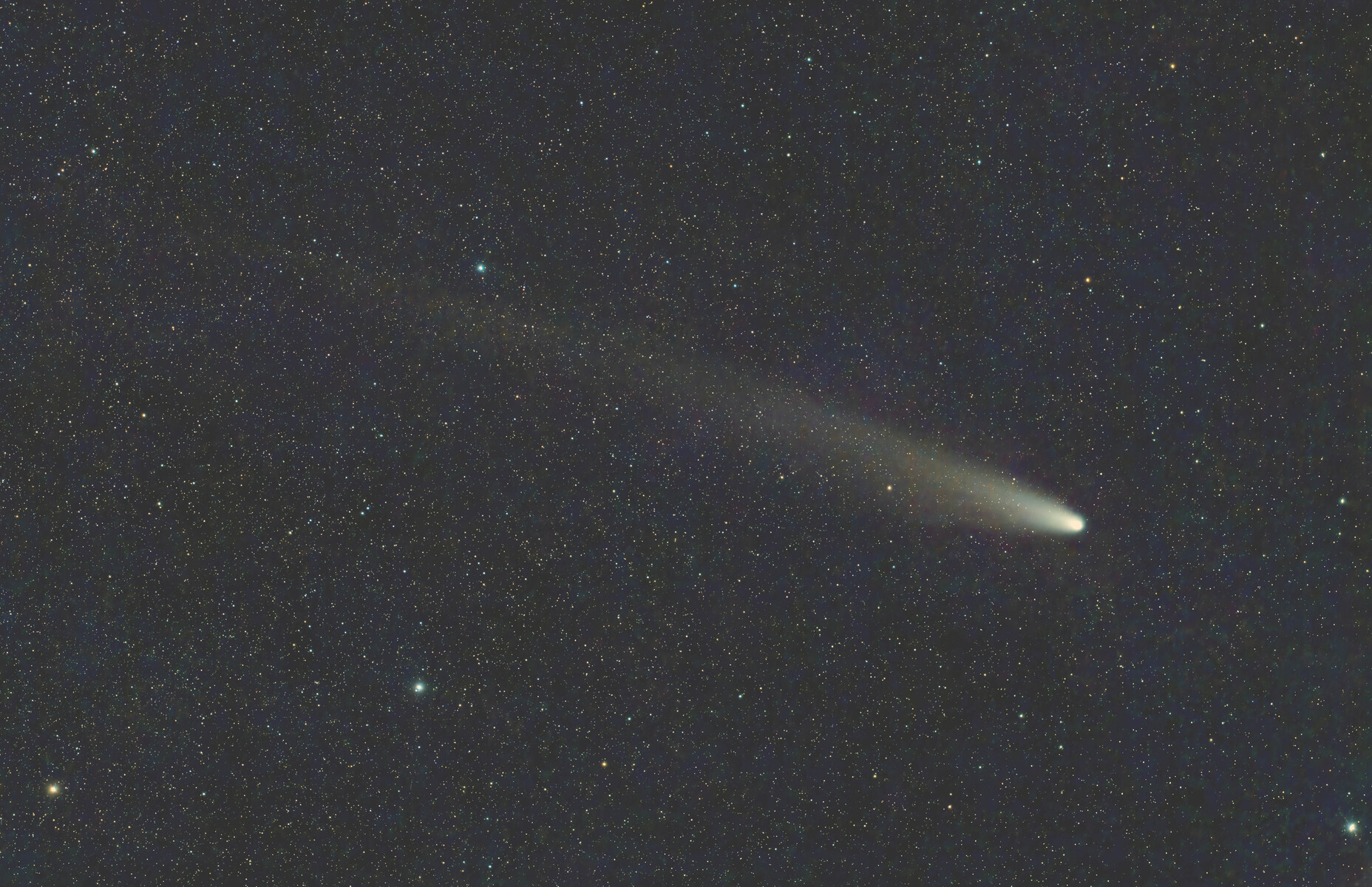 処理:WBPPにてキャリブレーション。恒星AlignmentしてσクリップIntegrationした画像をSXTにて星と彗星に分離。CometAlignmentしてσクリップIntegrationした画像をPsCCにて合成。