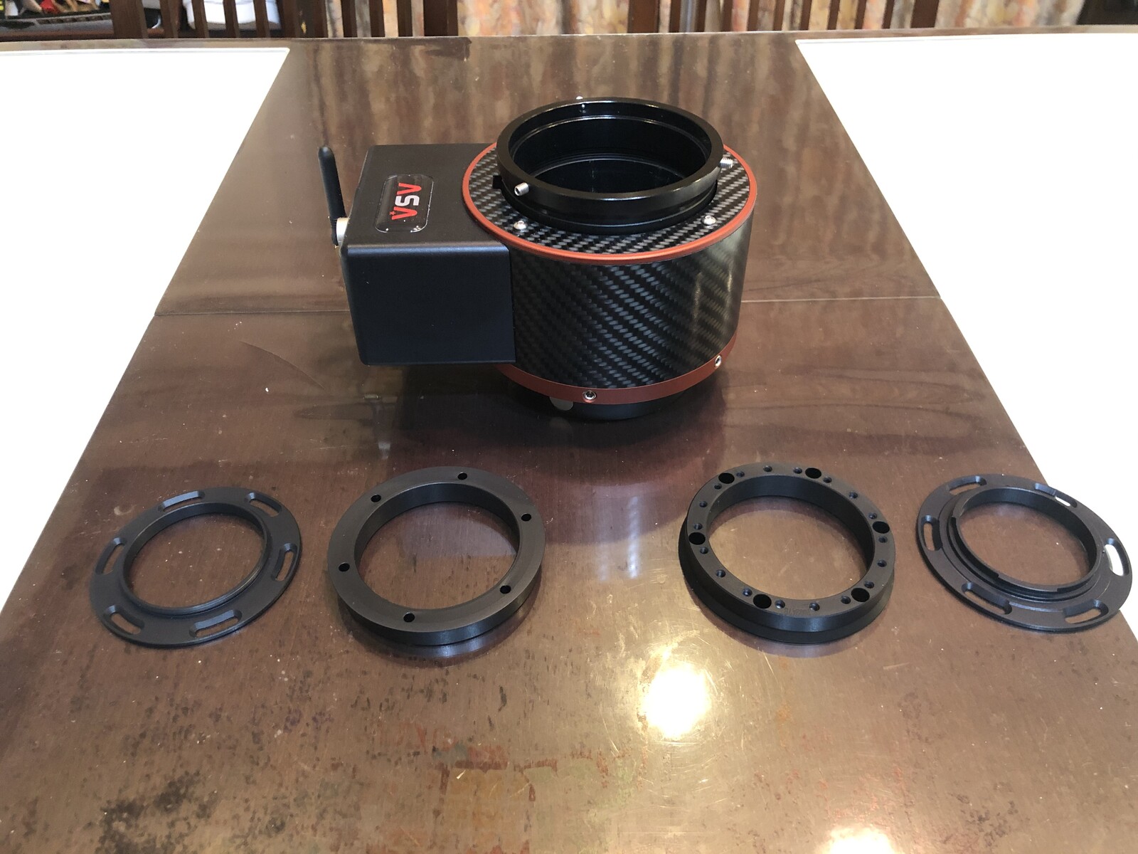 全体に剛性がアップした印象ですが、ただカメラの回転装置は3点イモネジとなり使い勝手は以前のレッドフラワーの方が良かった印象です。 またASAに作ってもらった特注リングの幅が10mm強と狭くちょっとオフアキプリズムの穴を空けるのは厳しそうです....。
