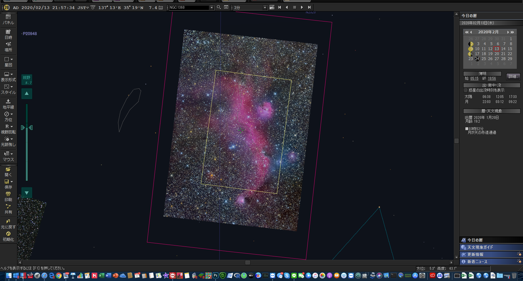 月がない22時〜23時までの短い間にすでに季節外れになりかけているカモメ星雲を撮りました。自宅からでは名古屋の光害や電線が入ってしまう最悪な状況で、どこまで写るかのテスト意味合いがあり興味を持って撮影しました。