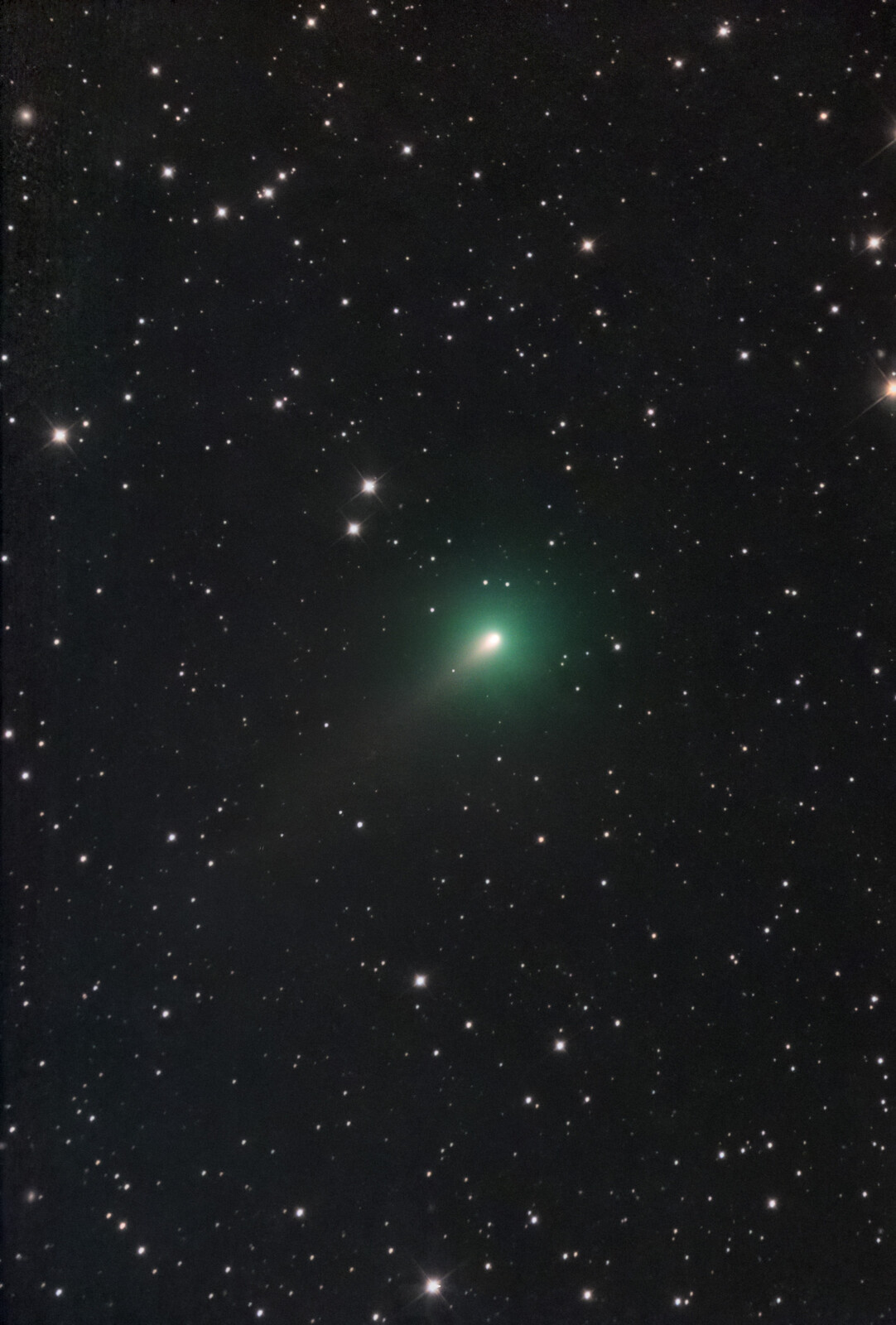 3月24日のアトラス彗星 2020年03月31日 21:54 公開が逆になりましたが、3月24日のアトラス彗星です。 アトラス彗星C/2019 Y42020年3月24日20時50分〜 自宅観測所VC200L直焦点+SBIG6303 -40℃AXD赤道儀、ED70SS+SX-SuperStarにてガイド1) 恒星ガイド 20時50分〜 L10分×4、RGB各5分×3 合計85分2) 彗星核ガイド 22時55分〜 L10分×6、RGB各5分×4 合計120分恒星ガイドの画像に、彗星核ガイドの彗星画像を23時の位置に合わせてレイヤー合成。 「彗星」カテゴリの最新記事 < 前の記事次の記事 > コメント コメントフォーム 名前 コメント 記事の評価 リセット リセット 顔 星 情報を記憶 コメントを投稿する