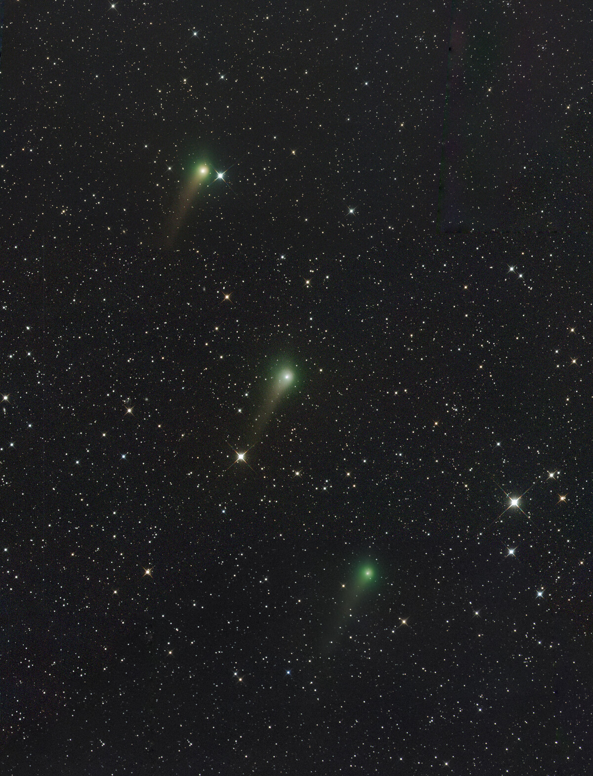 3日連続で撮影したのは良かったのですが、処理する時間がなくて、3夜分3枚×2彗星を一度に処理しました。