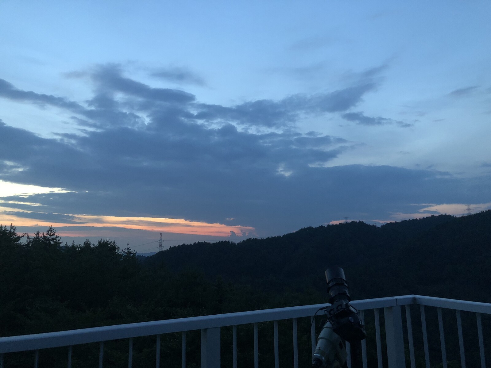 14時までの天気予報(SCW)ではあまり良い予報ではなく、諦めて自宅でバーベキューやっていましたが、夕方となり薄雲がありながらも晴れる予報に。夕食後慌てて出発しました。