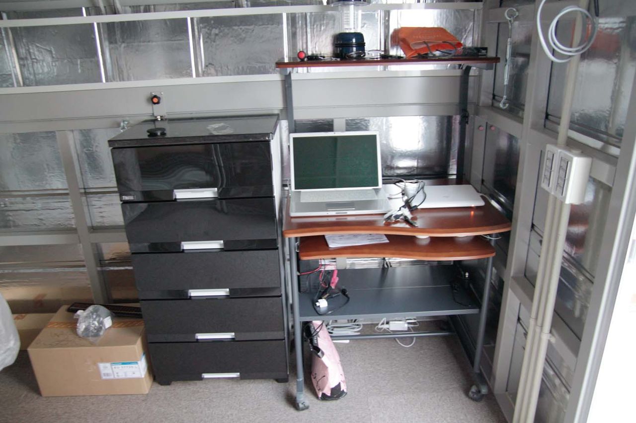 カーペットを敷いた後、棚やパソコン机を搬入しました。