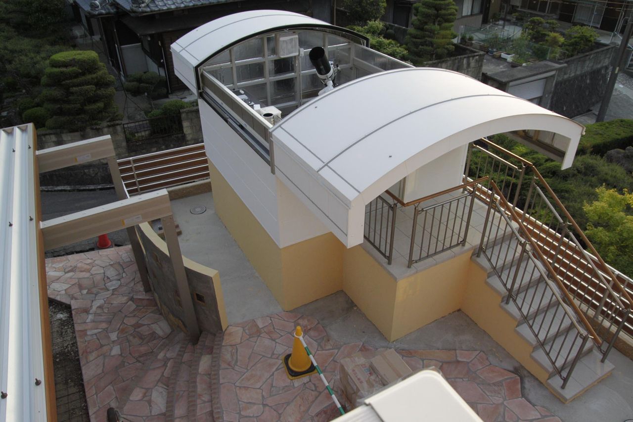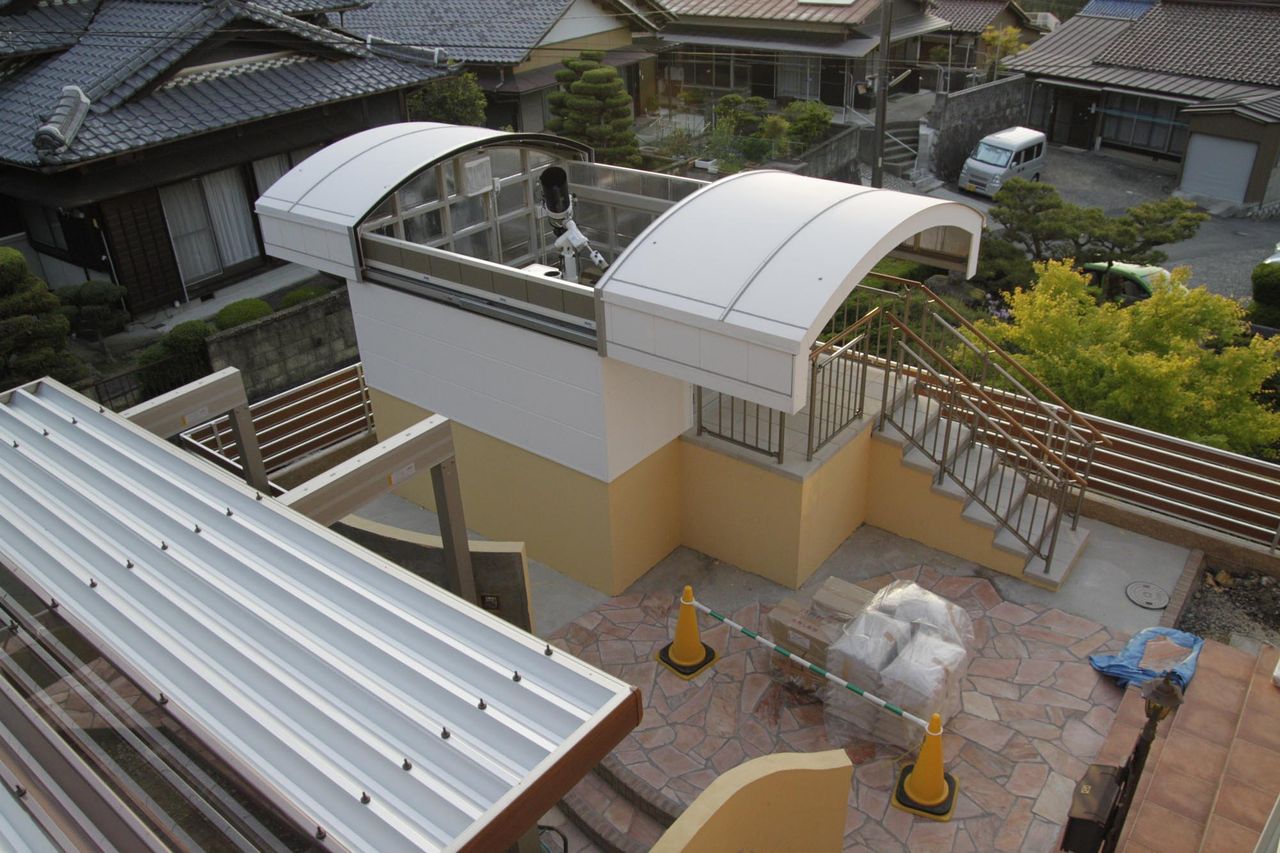 スライドルーフ完成間近 2014年05月13日 19:00 たか丸さんのリクエストによりスライドルーフを開いたところを撮影しました。ほぼ完成です。明日AXD赤道儀が来て、今週末照明が入ります。 「天体観測所」カテゴリの最新記事 < 前の記事次の記事 > コメント コメント一覧 (6) 1. ミッチー 2014年05月13日 20:46 おぉ、なんだかオサレに出来上がってますね。 ずいぶん前に「完成予想図」みたいなものを見せていただいた、 あのイメージ通りですね。当たり前か! 明日赤道儀入るんですか! いやー、見に行きたいです~。 すっごーーーく楽しみにして、今日は眠れないんじゃないですか? 仕方ない、天気いいから、庭で撮影でもしましょうか(笑) 0 のんた がしました 2. たか丸 2014年05月13日 20:48 おぉぉ!かっこいい!コンクリート部分も塗装したんですね。敷石の色とも合ってて鮮やかに見えます。リクエストに応えて頂きありがとうございました! 0 のんた がしました 3. のんた 2014年05月13日 20:57 ミッチーさん、たか丸さんコメントありがとうございます。 赤道儀来るの楽しみなんですが、待ちくたびれてなんだか力が抜けた感じです。SXP赤道儀も今夜までです。最後に撮影しようかな。 観測所まわりのコンクリート部分は、まだ樹脂舗装が済んでいませんので色が白っぽい色に変わります。 0 のんた がしました 4. GENTA 2014年05月13日 21:05 かっちょえー こりゃ出来上がったら一度行かなくてはなりませんね。 赤道儀とちょうど一緒ぐらいに完成しそうですね。 ところで無粋な質問なんですが、固定資産税は取られるのでしょうか? 0 のんた がしました 5. のんた 2014年05月13日 21:48 GENTAさんコメントありがとうございます。 それは内緒です。見つからないように....無理かな。 0 のんた がしました 6. けぺた 2014年05月15日 20:26 ようやく出来たね 美星天文台やったっけ? けっこう立派な天文台やね~ いつ見に行こうかな 0 のんた がしました コメントフォーム 名前 コメント 記事の評価 リセット リセット 顔 星 情報を記憶 コメントを投稿する