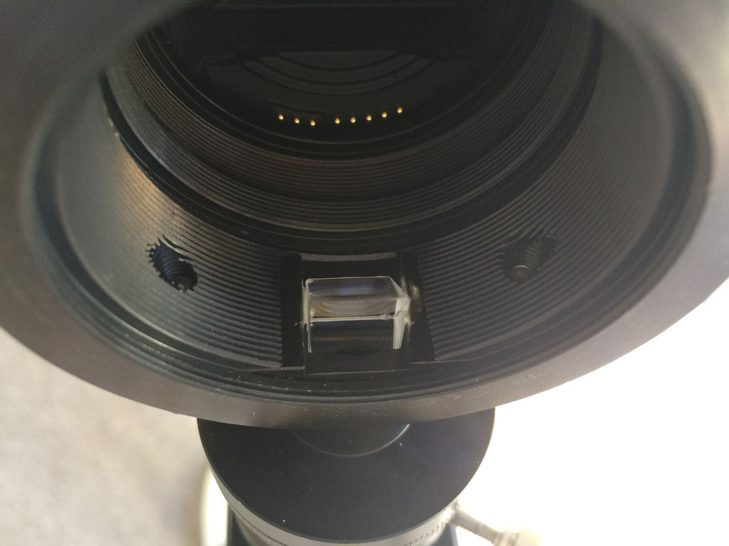 プリズムは六角ネジで固定されていました。間に1mmのワッシャをかませて全体に1mm引っ込みました。