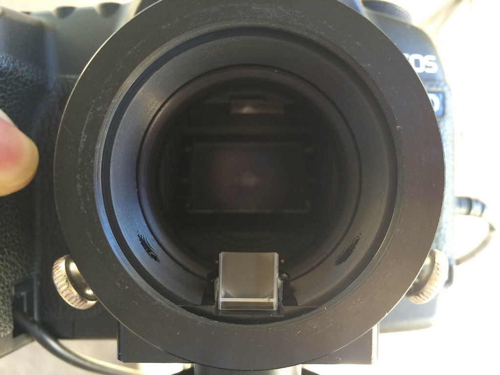 オフアキの望遠鏡側は48mmなのですね。プリズムが動かせ無いなら、フルサイズカメラでは少しケラレるでしょうね。