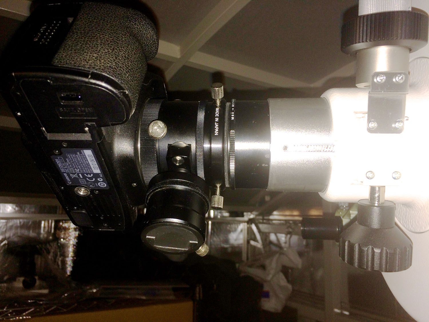 望遠鏡に取り付けたところ