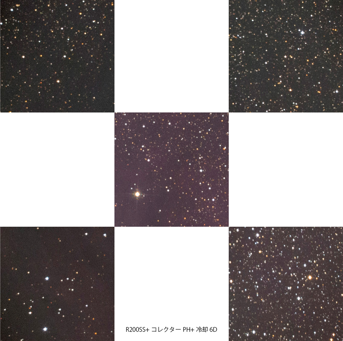 R200SS+コレクターPH+6Dの中心及び四隅の拡大画像はこちら (100%等倍切り出し)