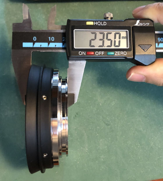 補正レンズ枠後面からEOSマウント部までの距離をけいそくしてみると...