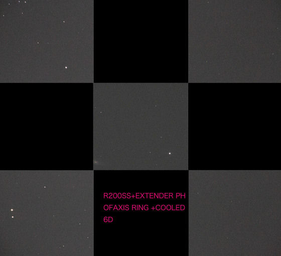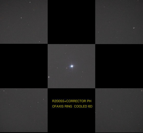 ピント位置がかなり後ろに下がり、周辺星像もかなり改善しています。緩めて取り付けてあるので星像は丸くなっていませんが、しっかり締めて撮影したものよりかなり改善が見られます。