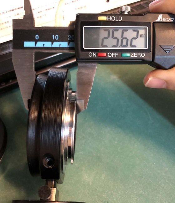 2)緩くねじ込んだと言うことは、補正レンズとセンサーまでの距離を伸ばしたことになります。今回1.5mm伸ばした位置で偶然改善が見られたのはラッキーでした。反対に短くする方だったらリングを作り直すしかなくなりますから。