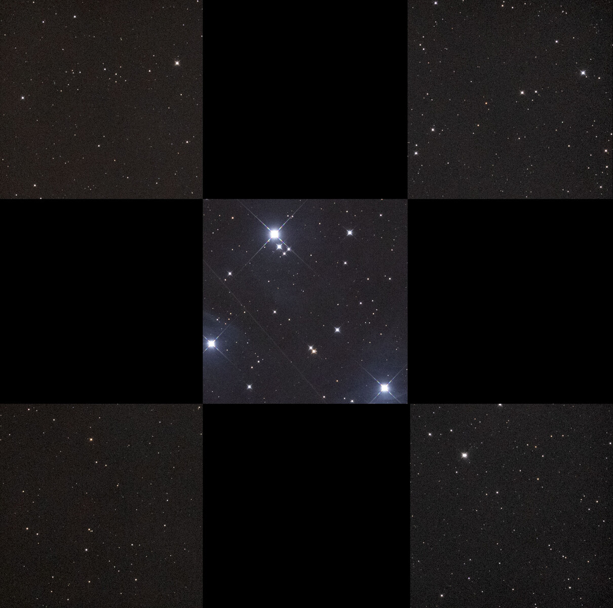 フルサイズ中央部、四隅の星像です。