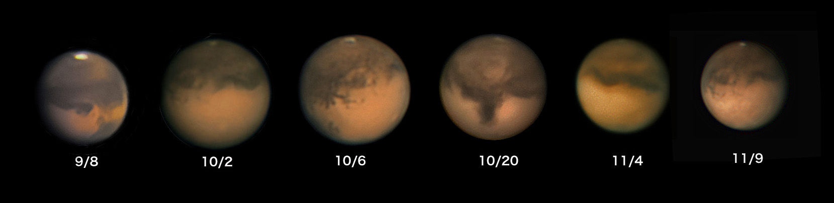 今年撮影した火星を並べてみました。